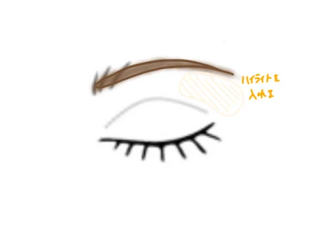 この雰囲気に近づけるために、眉下にはアイボリーや薄いピンク系のハイライトを入れると良いそうです。