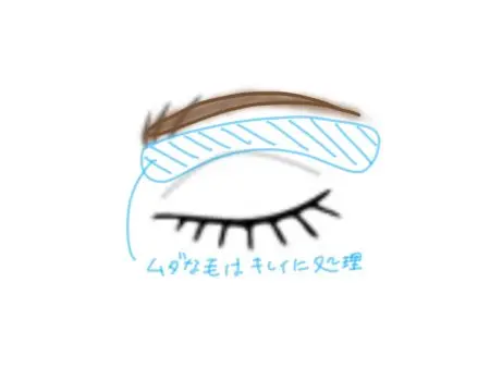 眉下の不要な毛は毛抜きで丁寧に処理していきます。