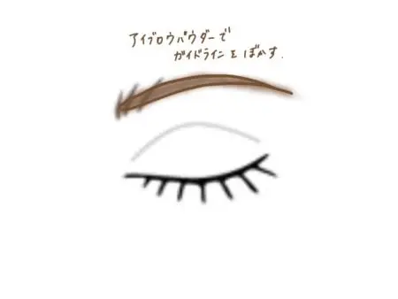 アイブロウパウダーを使って描いた線の上からボカしていきます。