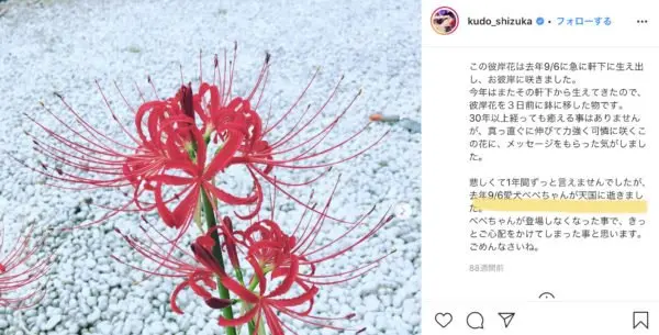 とても可愛らしい姿を見せてくれていたべべちゃんでしたが、2018年9月20日に、工藤静香さんが昨年べべちゃんが亡くなっていた事をインスタ上で明かしています。