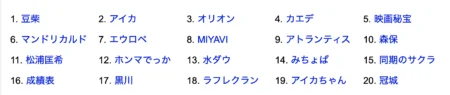 ダントツでハナエが人気のように感じますが、ハナエは12月18日の放送前から2万以上のフォロワーがついていましたので、番組終了後に一番伸びているのはアイカのようです。